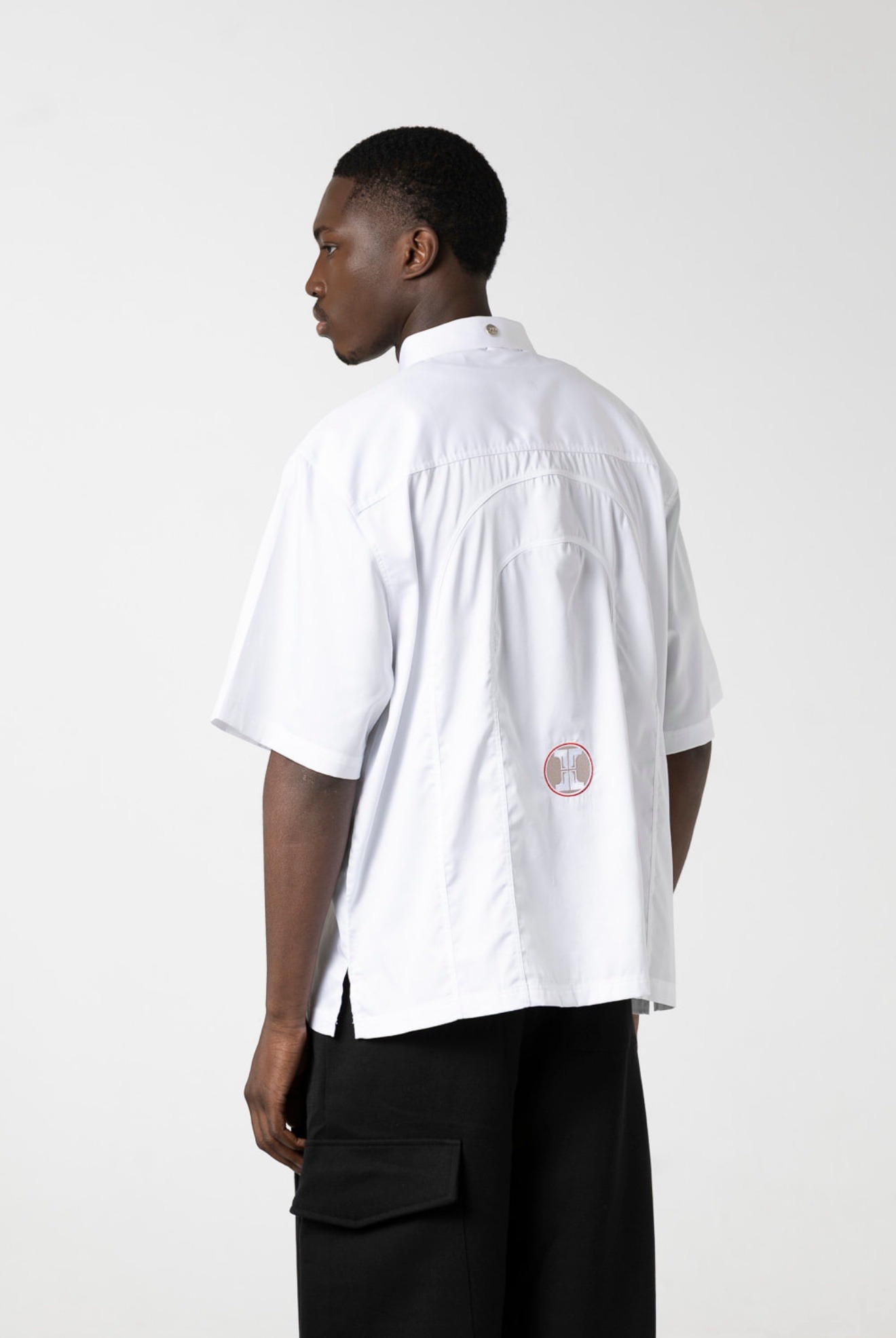 Le mannequin mesure 1,87 m et porte la chemise en taille M.